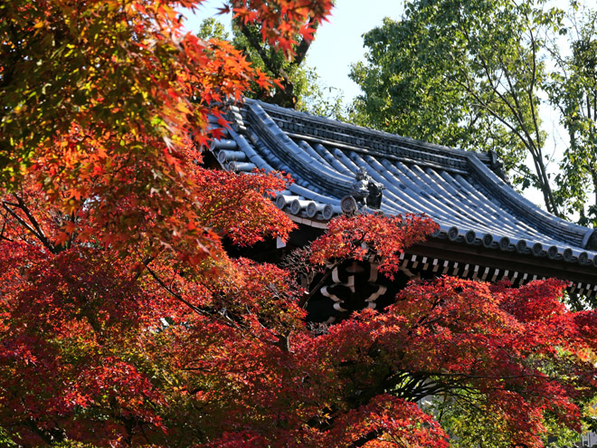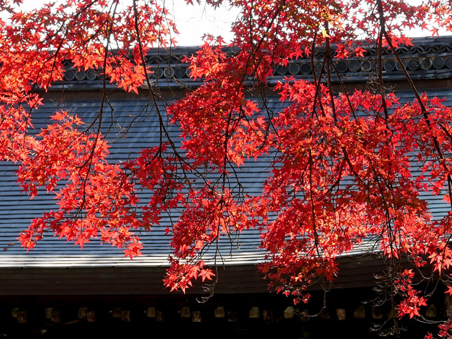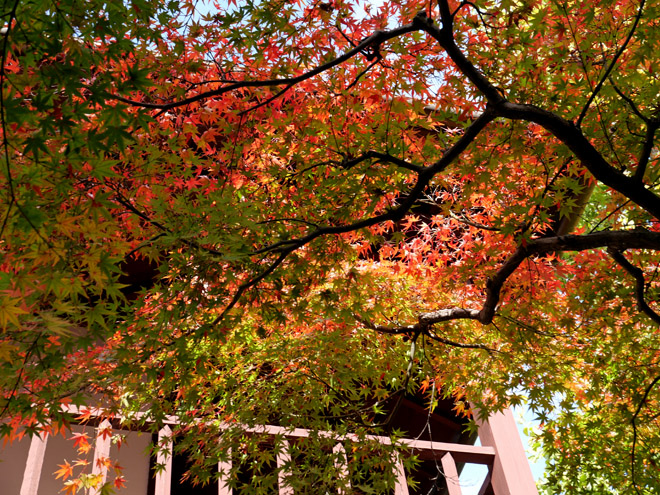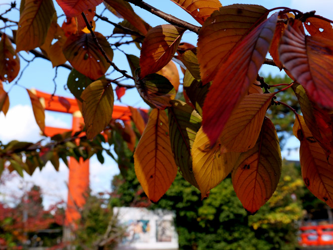 京電が走った寺町を下りました。梨木神社境内の紅葉が真っ赤に色づいてました。
