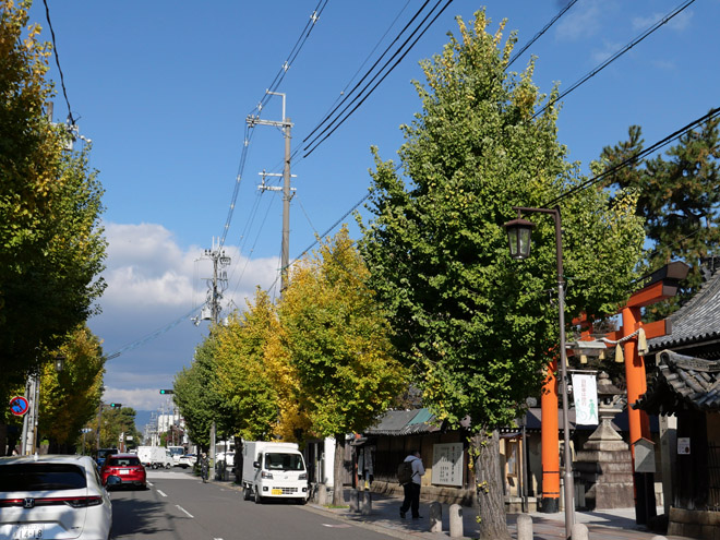 寺町の下御霊神社のあたりは銀杏並木が色づいていました・