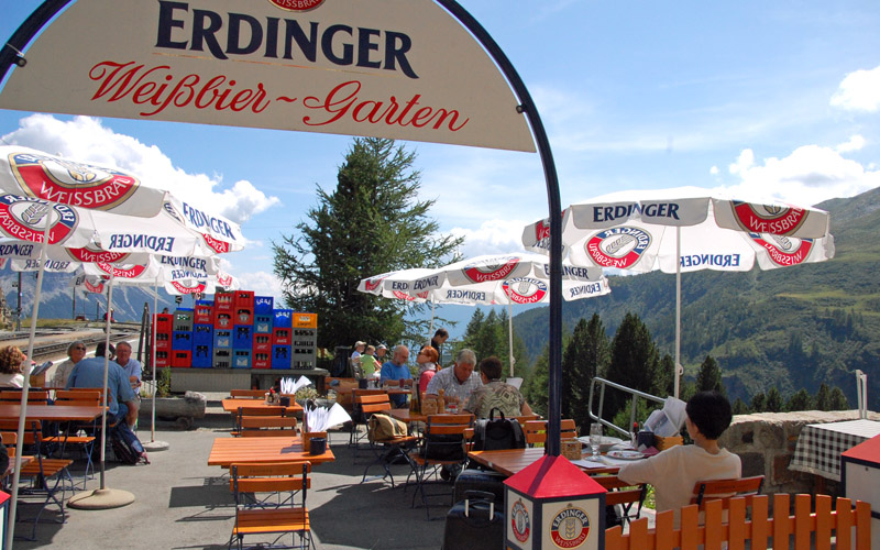標高2091mにあります。ラックレールを使わない粘着方式のベルニナ・エクスプレスは、グルリっと回って登ってきました。