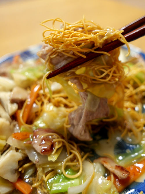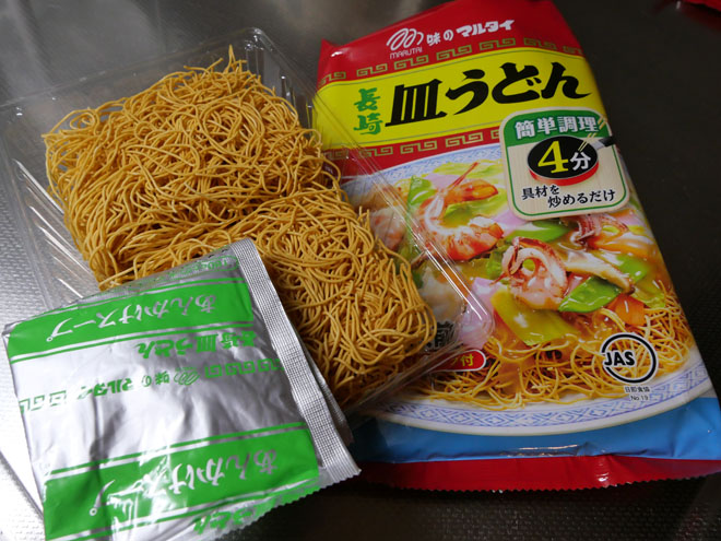 自分でつくる 野菜たっぷり長崎皿うどん 久しぶりに朝から雨模様。テレビで高校駅伝を見ていたらもう昼でした。 マルタイの「長崎皿うどん」がありました。冷蔵庫の野菜を炒めて「4分」で、と袋に書かれているとおりに簡単に完成です。 味付けは添付の調味料にお任せ。練りわさびを添え、盛り付け後に酢を振りかけただけです。 キャベツ、タマネギ、ニンジンと刻みました。ボリューミーになりました。 シェア Facebook で共有するにはクリックしてください (新しいウィンドウで開きます) Facebook