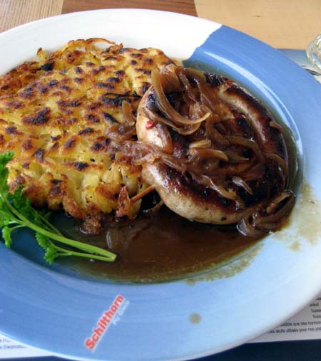 「渦巻きソーセージ、レシュテイ(スイス風ハッシュドポテト)添え」もいただきました。
