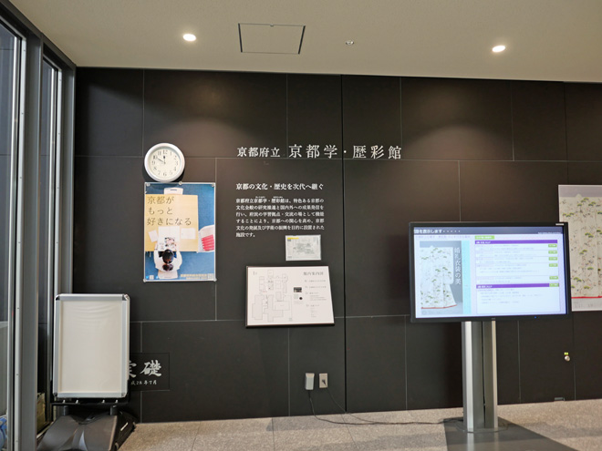食事の前にすぐ横にある京都府立京都学・歴彩館へ直行しました。京都関連の図書、雑誌、古文書などを閲覧することができます。