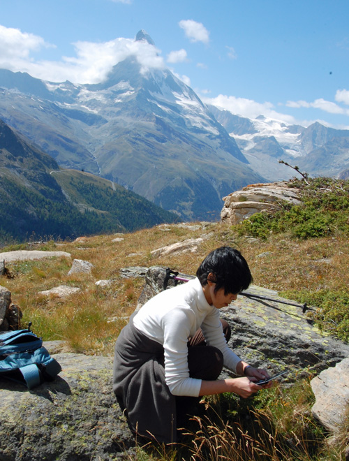 マッターホルンの麓の町ツェルマットからケーブルカー、ロープウェーと乗り継いでロートホルンへの中間駅、ブラウヘルドまで登ってきました。