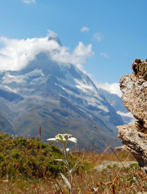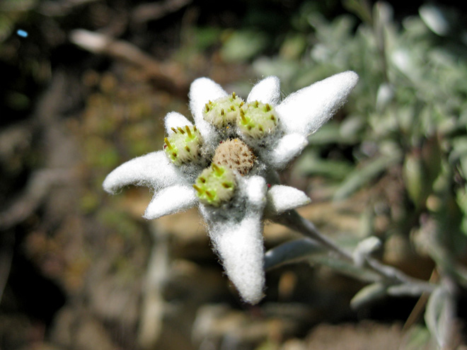 エーデルワイスという花を知ったのは、高校生の時に歌った「サウンド・オブ・ミュージック」のあのメロディーでした。45年ほどたっての、ホンモノとの出会いでした。