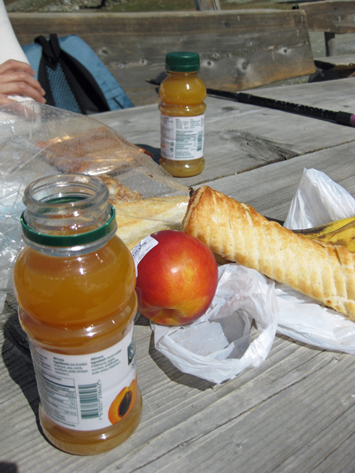 ツェルマットのスーパーで買ってきたパンとジュースです。これだけで十分ででした。
