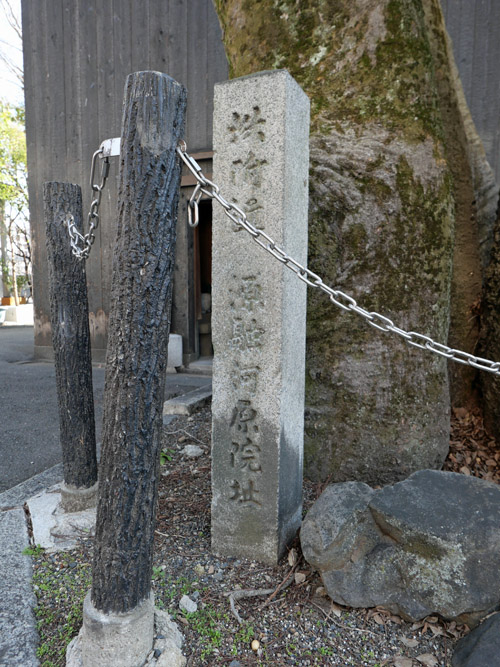 木の下に「源融河原院阯」の碑が立っています。
