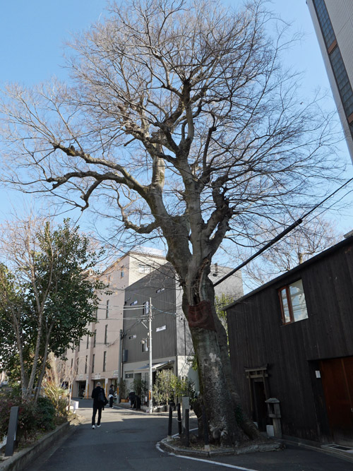 大橋の南に大きなエノキがそびえています。