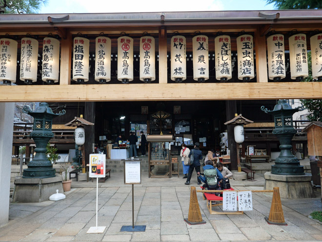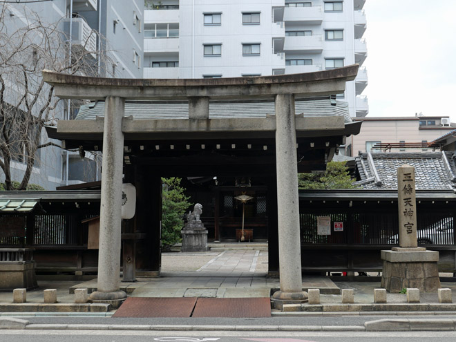 平安遷都の折に創建された洛中最古の社で、「天使の宮」「天使社」と称しました。秀吉の天正の地割りで広い敷地を貫通する道ができたことから、あたりの地名が「天使突抜(てんしつきぬけ)」となりました。