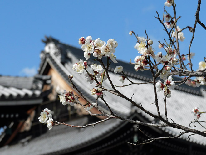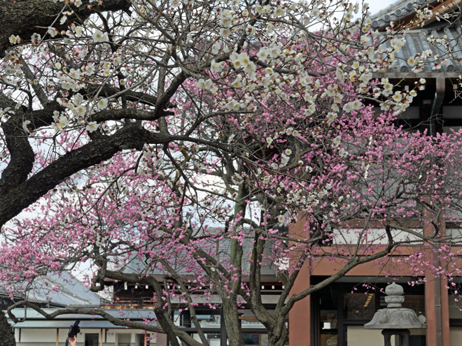 お隣の興正寺の紅白梅がきれいに咲いていました。