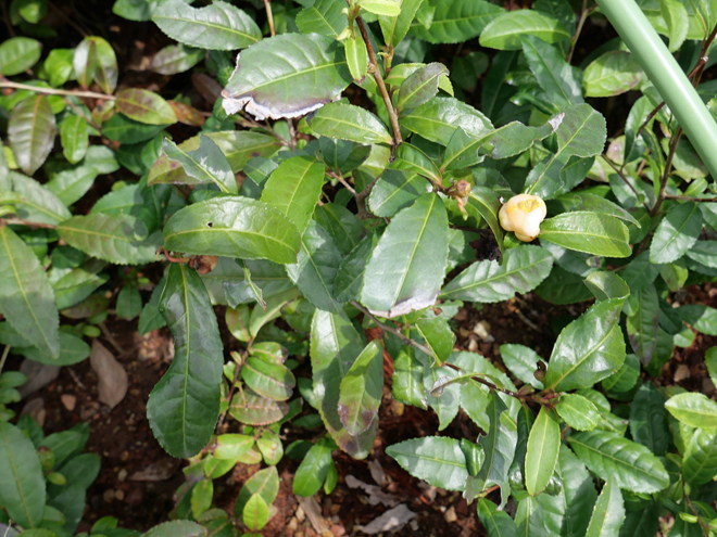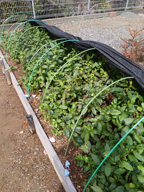 門前の琴坂両脇に自生している茶の木を挿し木しています。