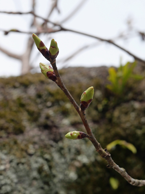 門前の大島桜はまだ芽が堅いです。