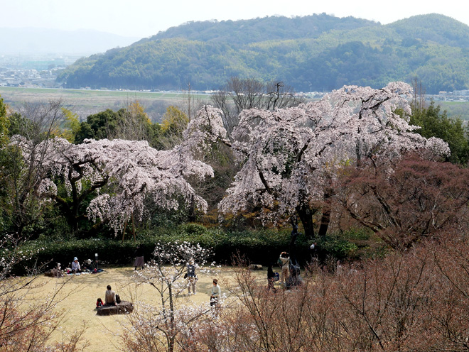 山荘のベランダから見下ろしました。向こうは石清水八幡宮がある男山です。