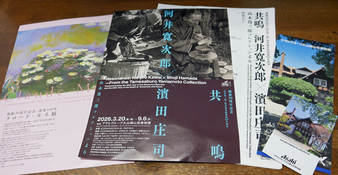 始まったばかりの記念展示が見たかったのです。「共鳴 河井寛次郎☓濱田庄司」です。朝日麦酒の初代社長、山本爲三郎が支援した民藝運動の中心的人物、河井と濱田の作品が並んでいます。