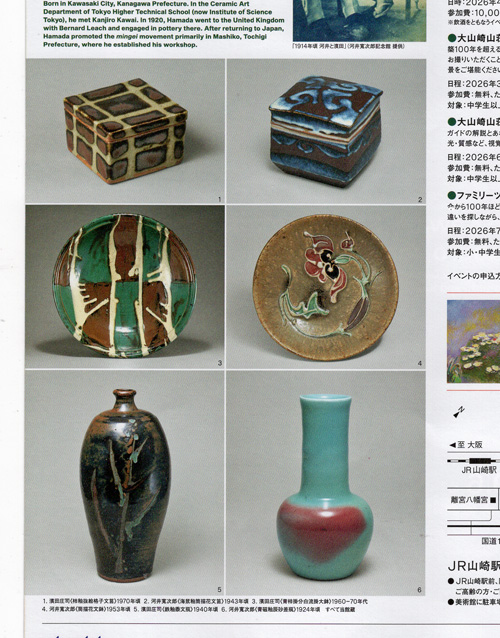 館内は撮影禁止です。パンフレットの作品です。左側の3つが濱田、右が河井です。