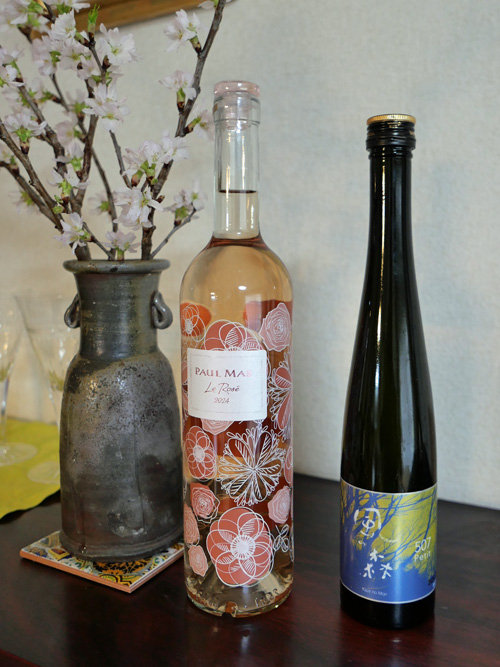 ワイン2本とビールを空けました。代わって春らしいパッケージのロゼと、奈良のあまり手に入らない貴重な清酒の2本をみやげにいただいて、どんな料理で飲もうかと楽しみが続きます。ありがとうございます。