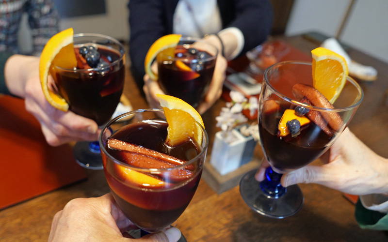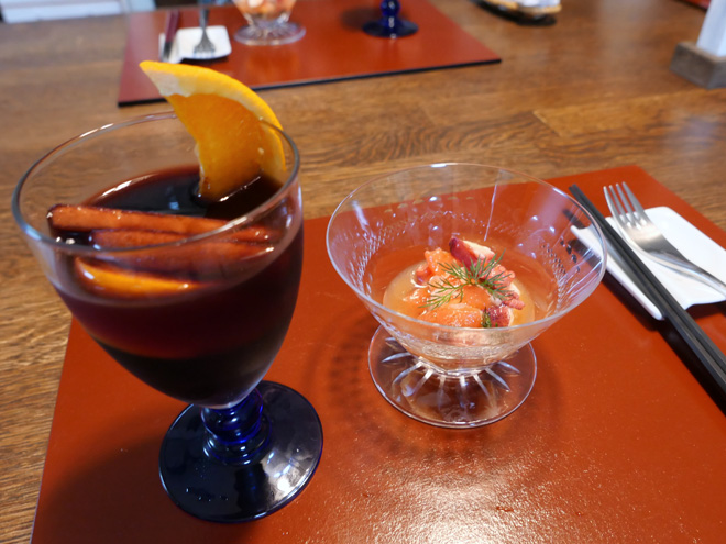 まずはサングリアで乾杯しました。シナモンを入れすぎたかなと思ってましたが、かえって好評のようでした。前菜は、蛸とトマトのマリネです。