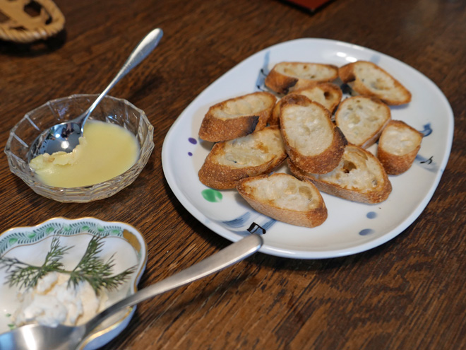 大好きなパヴェナチュール(大山崎町)で買ってきたバケットです。中華麹のバターやクリームチーズでいただきました。