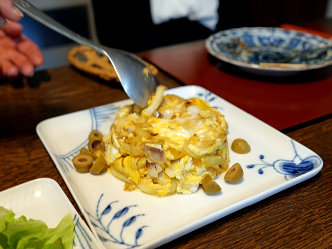 得意料理となったバカリャウ・ア・ブラースも登場しました。バカリャウ(塩漬け干しタラ)は手に入らないので、生のタラ切り身で代用です。