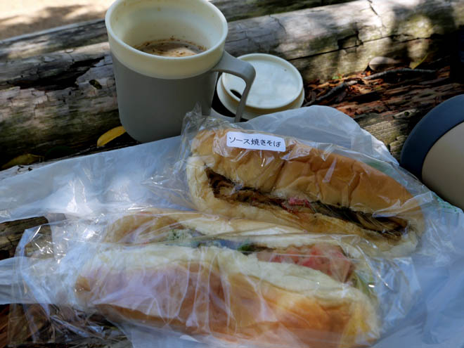 コーヒーを入れてコッペパンをかじりました。もう一つはソース焼きそばでした。パンは小ぶりですが、具はたっぷりで食べごたえがありました。