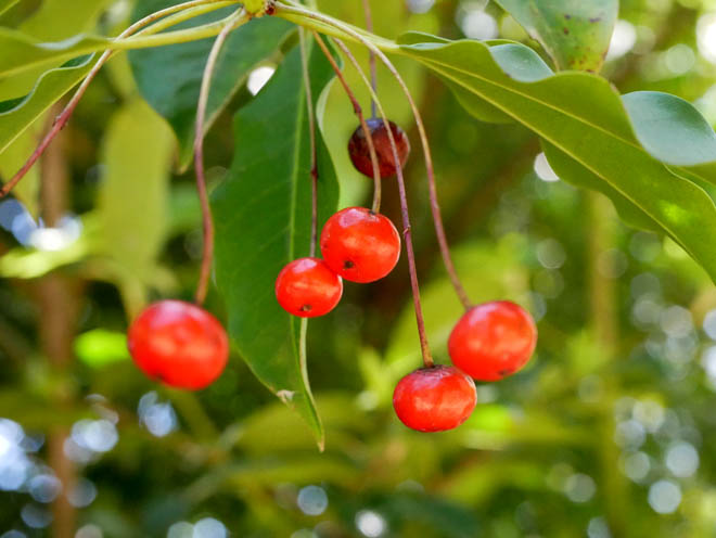 サクランボのように垂れ下がっているのはソヨゴの赤い実でしょう。