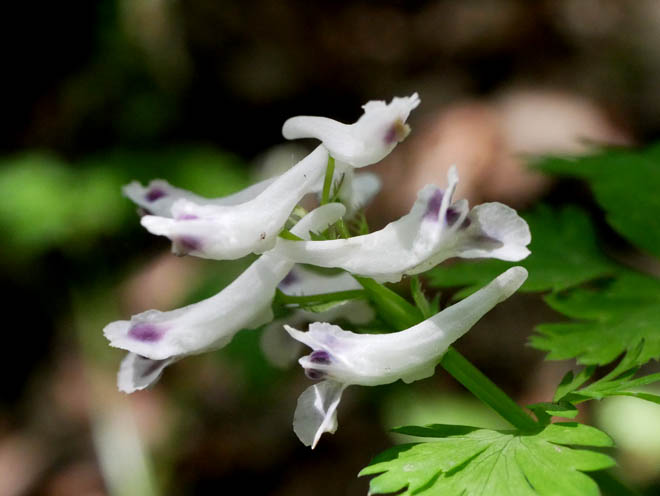 ユキヤブケマンでしょうか。それともシロバナケマン? その差異がわかりません。ムラサキケマンの白花変種です。