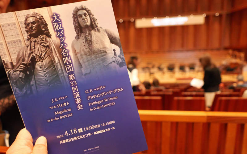 兵庫県立文化センターの大ホールで、大阪バッハ合唱団の第33回演奏会を聴きました。プログラムは、J.S.バッハのマニフィカトと、G.E.ヘンデルのデッティンゲン・テ・デウムでした。