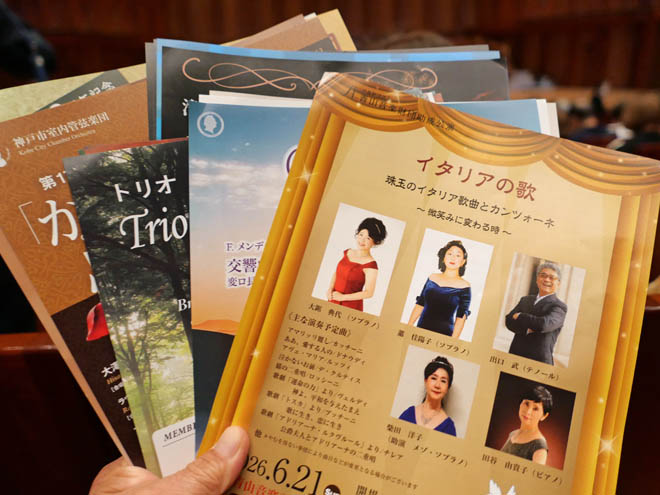 分厚いチラシの束をもらいました。1枚づつ見ていると、よく存じ上げるお方の演奏会もありました。
