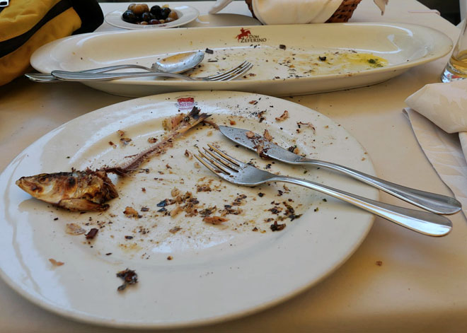 日本のイワシと同じ味です。ナイフ&フォークできれいに食べ尽くしました。