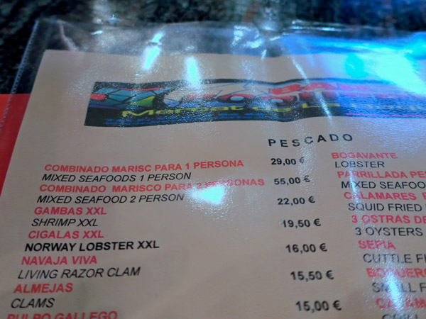 こんな店がいくつもあって、にぎわってます。お勘定は、ガリシアに比べて1.5倍といったところです。